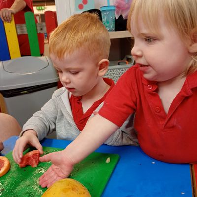 At 14:00pm we offer the children a chance to cut up fruit again and eat it, they have the opportunity to have a cup of milk or water.